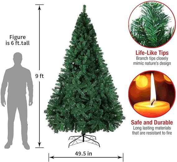 • ?Easy to assemble—This 9-foot indoor Christmas tree stands tall and is equipped with 1850 sturdy branches tips. It is simple to assemble as well as disassemble with a hinged composition. Please store the Christmas tree in a cool dry place away from sunlight after disassembly.