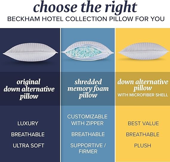 Beckham Hotel Collection Queen/Standard Size Memory Foam Bed Pillows Set of 2 - Cooling Shredded Foam Pillow for Back, Stomach or Side Sleepers