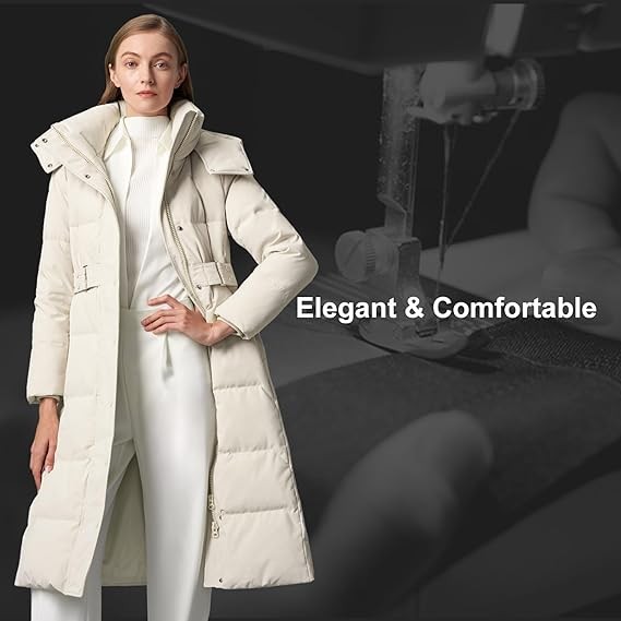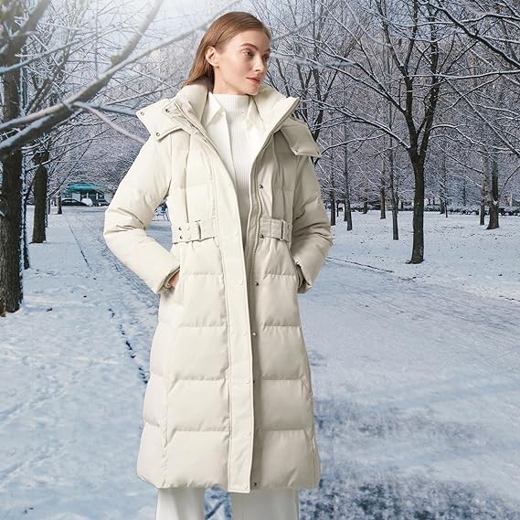 • WINTER DOWN JACKET: BOSIDENG thickened long down jacket for women features full zipper,waist belt design and warm windproof cuffs, which can withstand wind and provide comfortable fit;Women's down jackets use internal down insulation material to isolate cold temperatures and increase warmth retention.
