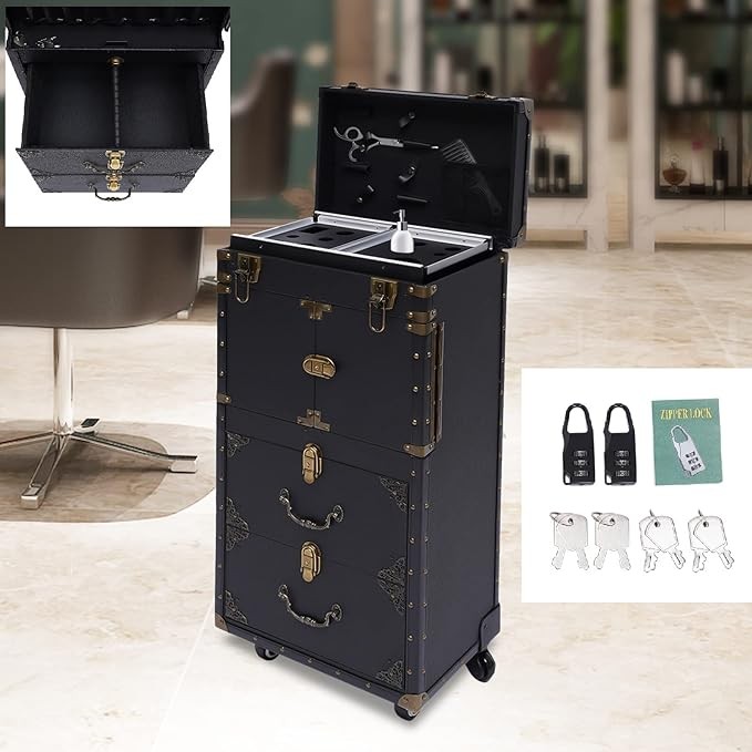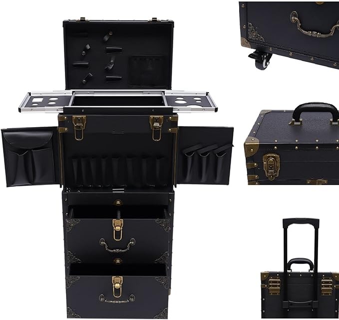 • ★【Large Capacity & Application】With 4-Tiers, this beauty salon luggage can provide you with plenty of storage space to meet your storage needs. Whether you are an artist or a hairdresser, you can put all your tools inside. This beauty salon luggage is suitable for placing hair coloring materials and tools. This beauty salon luggage is suitable for barber stores, hairdressing colleges, homes, etc.