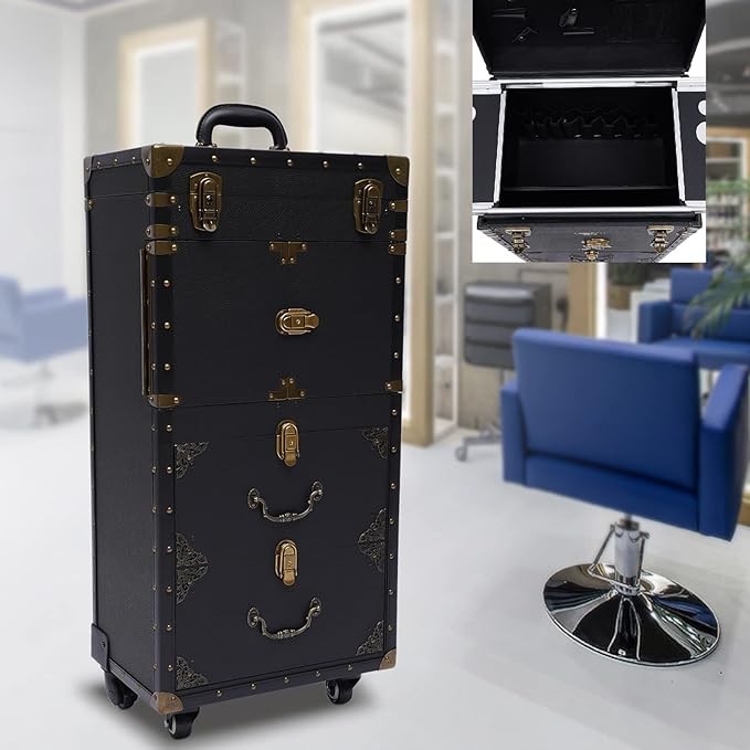 • ★【Easy to Move】This beauty salon luggage is equipped with universal wheels, a carrying handle and a drawbar. You can easily move it to the desired position, which is convenient for hair cutting, hair coloring, and working outside.