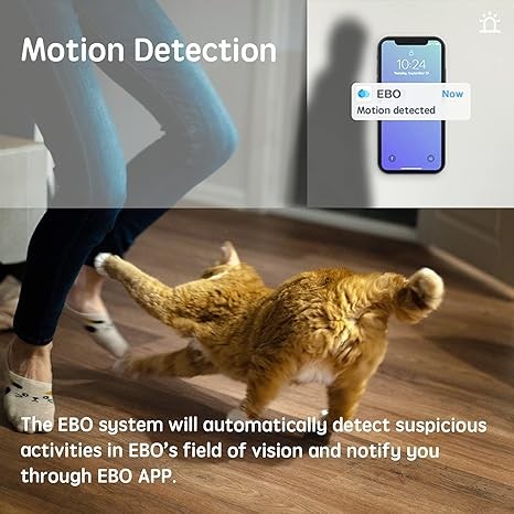 • 2 Way Talk & 1080P Night Vision: EBO SE provides you with a new way to connect, allowing you to talk to your family or pets all day, and open the EBO APP, you can see their every move.HD night vision and self-charging features enable 24-hour guarding and companionship.