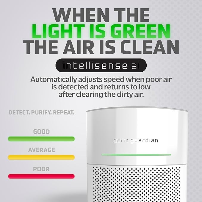Germ Guardian AirSafe+ Intelligent Air Purifier with 360° HEPA 13 Filter, Captures 99.97% of Pollutants, Wildfire Smoke, Large Rooms, Air Quality Sensor, UVC Light, Zero Ozone Verified, White AC3000W