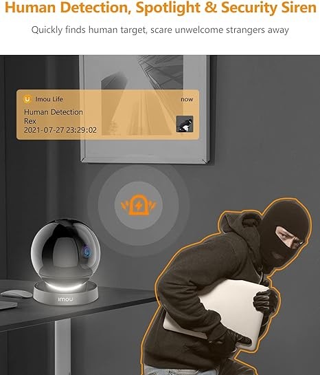 • SPECIFICALLY DESIGNED FOR HOME SECURITY: When an intruder is spotted, the human detection technology quickly picks out human targets, then motion tracking focuses on the target and follows it. The built-in spotlight turns on and the siren activates, scaring away unwelcome visitors