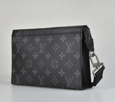 LV Gaston gray LOGO canvas 2-in-1 zipper hand/cross-body bag (carbon black x charcoal gray)