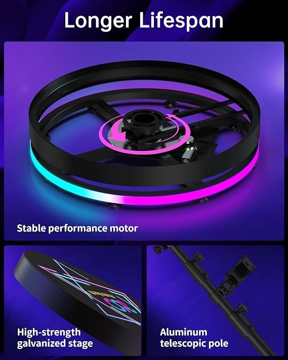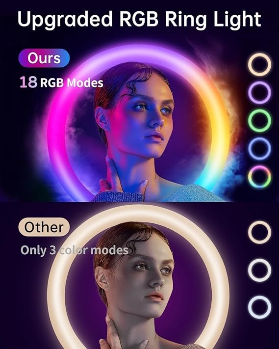 • [Upgraded RGB Ring Light: 18 color modes] The ring light of our 360 video booth features 18 RGB color modes (6 monochrome static modes + 12 dynamic modes) with even light distribution and no shadows, as well as 10 different brightness levels to choose from. Compared to other brands with only 3 color modes, our colorful RGB ring light creates a mysterious and magical atmosphere, bringing infinite inspiration to your video creation.