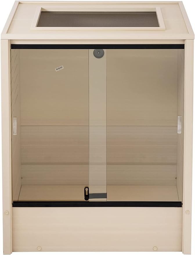 • [specifications]Extra height perfect for arboreal species, deep floor area for ample substrate, removable glass sliding doors with lock to secure pet, opening on the lower back panel for temperature probes, or misting systems, generous mesh screen top will accommodate most UV and heat lamp set-ups, and vented side panels offer optimal ventilation.