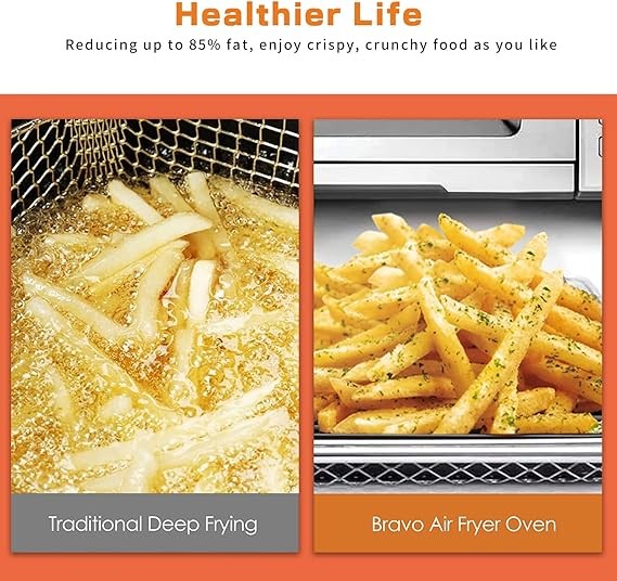 • MORE THAN 12-IN-1 – The NuWave Bravo XL Air Fryer includes 12 preset cooking functions for air frying, baking, broiling, roasting, toasting, grilling, dehydrating, reheating, defrosting and making restaurant-quality waffles, pizza and bagels with the single press of a button
