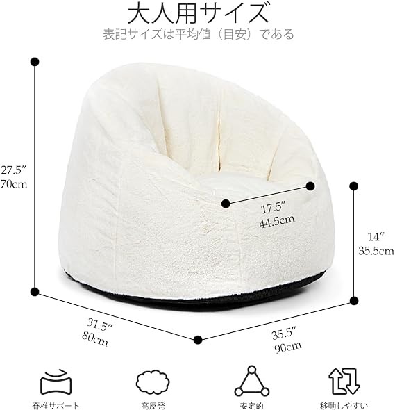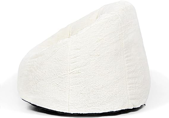 N&V Large Bean Bag Chair, Adult Size Bean Bag Sack, Foam Filling, Includes Removable and Machine Washable Cover, 37in, Soft Faux Fur (White)