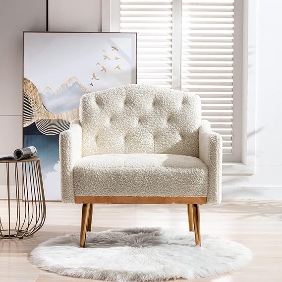 • Quality Crafted: The backrest and cushion of this modern single sofa chair are wrapped by high quality teddy sherpa fur fabric and foam padding with high elasticity, and tapered metal legs will not crack compared to other wooden legs, making it more sturdy and durable.Weight capacity 220lbs.