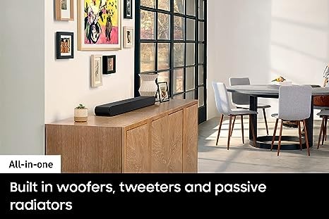 • ALL-IN-ONE: Everything you need in a single soundbar with two woofers and tweeters built in, so you can enjoy rich sound that will fill your room