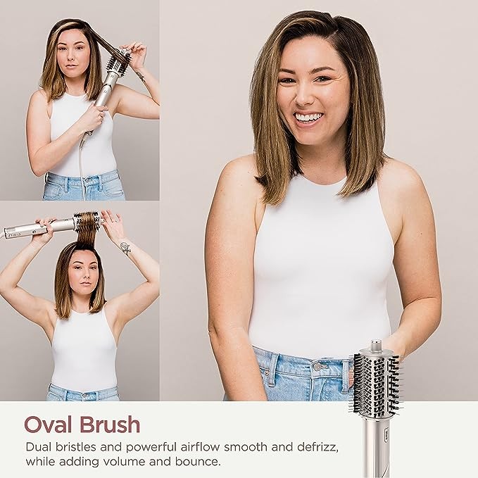 • 2 BRUSHES: Attachable OVAL BRUSH smooths, defrizzes, and adds volume & bounce, while delivering powerful airflow. The attachable PADDLE BRUSH employs powerful airflow, straightening & smoothing your hair, all at once.