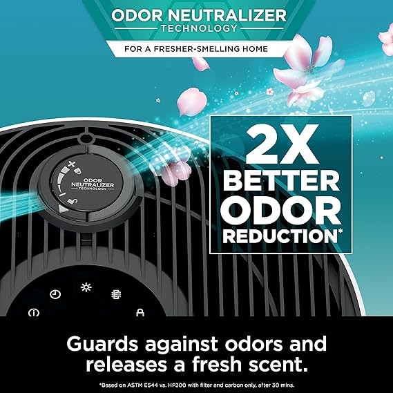 • FRESH-SMELLING HOME: Odor Neutralizer Technology guards against odors throughout your home, releasing a fresh scent, delivering 2x better odor reduction vs. filtration alone. *Based on ASTM E544 vs. HP300 with filter and carbon only, after 30 minutes.