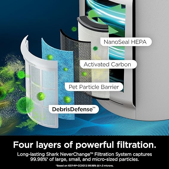 • WHATS INCLUDED: Shark NeverChange Air Purifier MAX, Debris Defense Washable Filter & NeverChange HEPA filter.