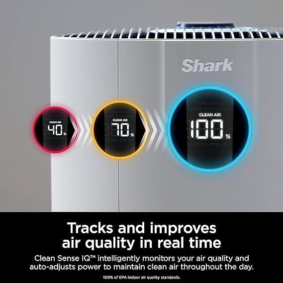 • AUTOMATICALLY ADJUSTS: Clean Sense IQ tracks air quality and constantly adjusts power to maintain clean air in your home. (Measures three particle sizes: PM1, PM2.5, and PM10). Results & updates are displayed in real-time on an LED screen.