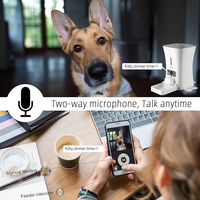 TALK -- High quality 2-way microphone without noise, souffle and echo, you can choose to listen/speak to your pet at any time anywhere