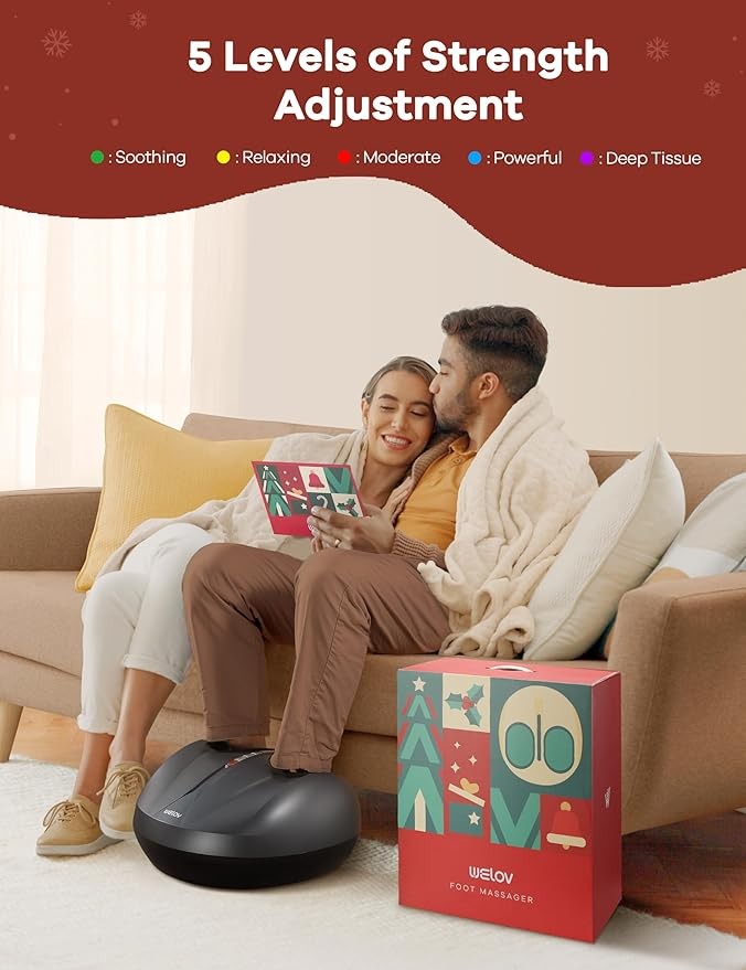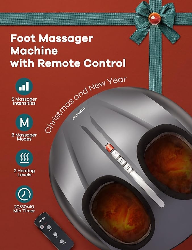 • 【Professional Foot Massager Machine】: Welov electric foot massager has ? ??????? ?????, ? ???????? ????????? ?????? and ? ??????? ??????. The ergonomic design complements the structure of the human foot and is thoroughly constructed to target the foot reflex zones and massage points which can effectively relieve foot from plantar fasciitis, neuropathy pain, foot stiffness, fatigued muscles, improve blood flow and promote better sleep.