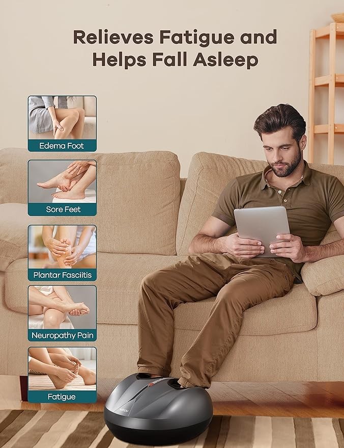 • 【Built-In Air Compression Technology】: Our foot massager for plantar fasciitis with ? ?????????? ??????? ????????? ??????, which can be used on the instep, heel and ankles. It works better with the kneading and heat functions. Deep kneading massage can reduce muscle stiffness, relaxes muscle tissue, and provide you with the ultimate massage experience. It is advisable to start it off at a low level and slowly set it to a higher setting to avoid strain or pain.