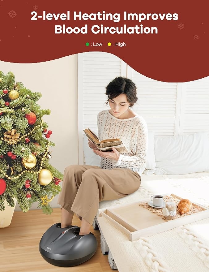 • 【Soothing Heating Function】: The foot massager with heat has an ?????????? ? ??????? ??????. The heated foot massager rapidly warms up in seconds and warms your cold feet, increases massage comfort, further relieves muscle tension and foot soreness, enhances blood circulation and promotes better sleep. The heating function can work independently and is especially friendly for the elderly with edema of legs and feet and decreased mobility, especially during cold weather.