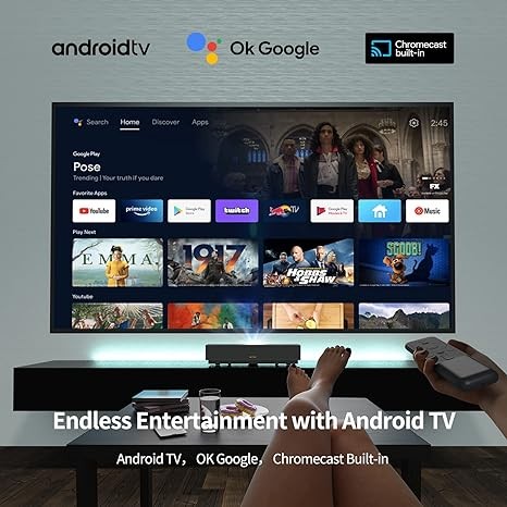 • 【Android TV Smart Projector, 5K+ APPs Built-in】 WEMAX Nova is a smart projector that comes loaded with thousands of apps at your fingertips powered by Android TV. Stream your favorite shows from Hulu, HBO Max, Showtime, Disney+, and many more. Use the voice command button to tell Nova what you want to watch. NOTE: Netflix is recommended in Aptoide TV or with a streaming device such as a connected Fire TV stick